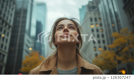Conceptual depiction of a believing person, head turned towards heaven, radiating inner peace, calm equilibrium and hope