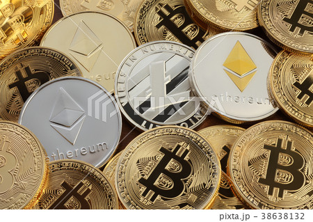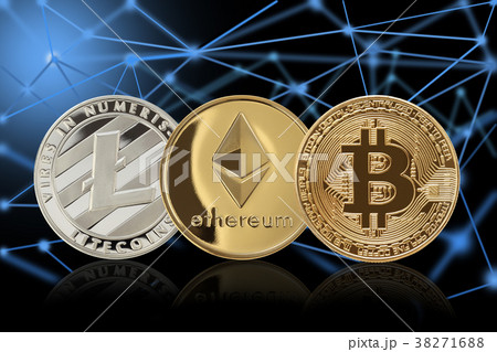仮想通貨/イーサリアム,ライトコイン,ビットコイン,とブロックチェーンイメージ