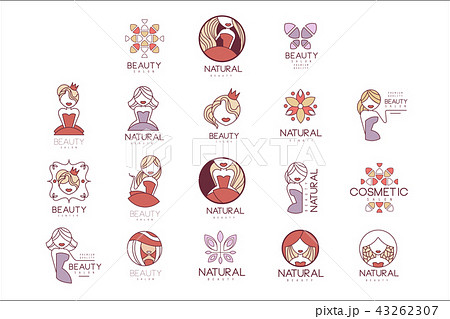 Natural Beauty Salon Set Of Hand Drawn Cartoon Outlined Sign Design Templates With Female Character