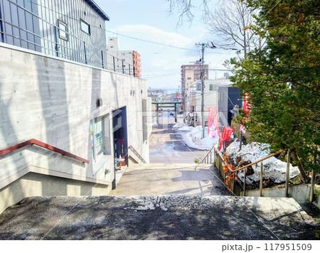 北海道 小樽の龍宮神社の階段からの入り口の風景