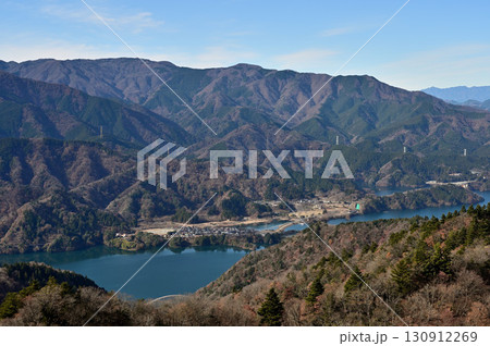 丹沢の高取山山頂 展望台からの展望 丹沢山地と宮ヶ瀬湖