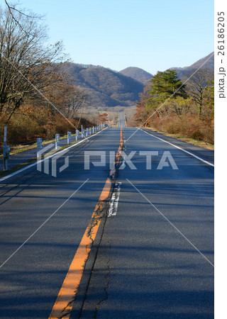 晩秋の榛名山 高原の直線道路 群馬県
