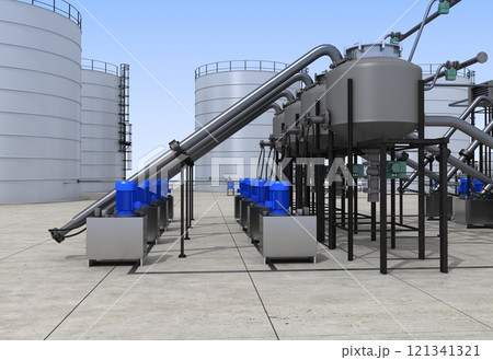 oil refinery, chemical production, waste processing plant, exterior visualization, 3D illustration, cg