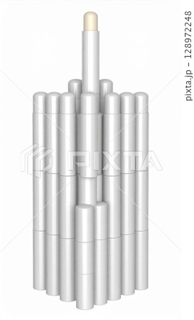 Abstract Tower Structure in White Tones Composed of Cylindrical Pillars and Geometric Shapes