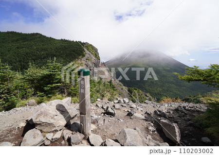 長野県高峰高原車坂峠から登る黒斑山への登山道 途中にある槍ケ鞘の標識付近 2023年9月19日