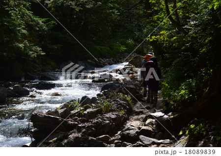 初夏の北アルプス登山 槍沢登山道を歩く 一ノ俣谷 渓流