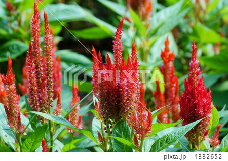 花壇に咲く赤いケイトウの花