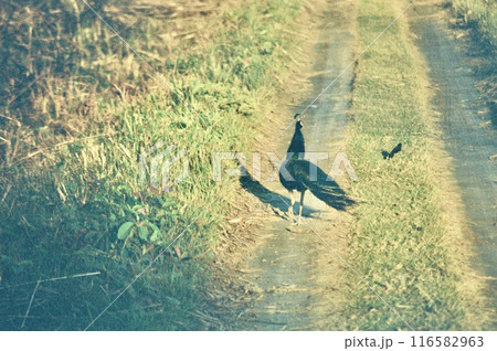 野生のインドクジャク(オス)(チトワン/ネパール)