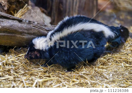 歩き回るシマスカンク 神戸どうぶつ王国 兵庫県神戸市