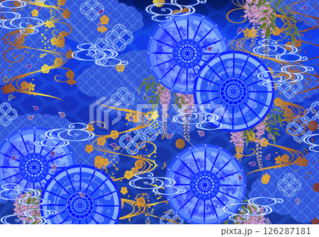 番傘が描かれた豪華な和柄の壁紙