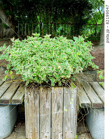 Ariegated Balfour aralia or Polyscias Balfouriana is green with white leaves texture nature background. tree plants gardening at the house