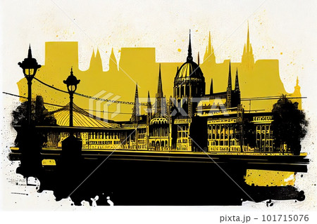 Budapest Travel Illustration, Hungary Tourism Concept, Graphic Art, Drawing Imitation, AI Generative Content