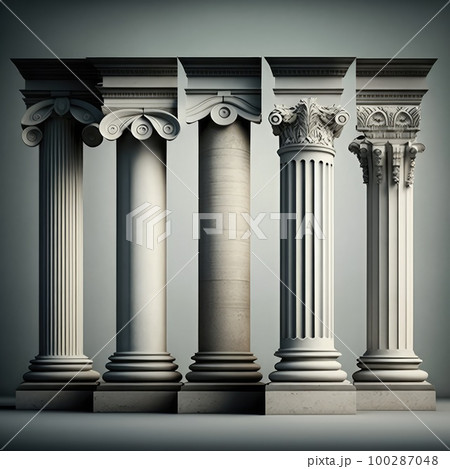 Stone Pillars Set, Old Roman Columns, Marble Greek Pillar, Rome Greece Architecture, Generative AI Illustration