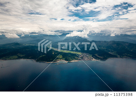 新潟県糸魚川市の能生港上空から八ヶ岳連峰の権現岳方向を撮影
