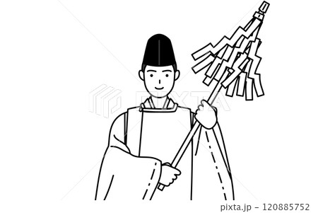 為替差益や円高のイメージ、神社の神主、烏帽子と狩衣姿