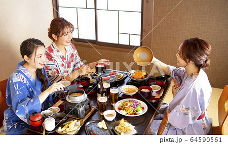 温泉旅行を楽しむ女性と友達