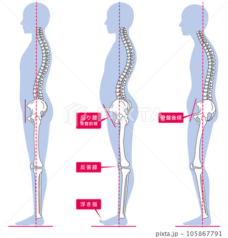 反り腰、骨盤後傾の姿勢 比較