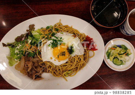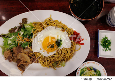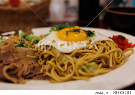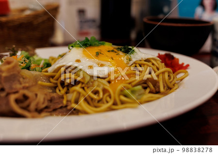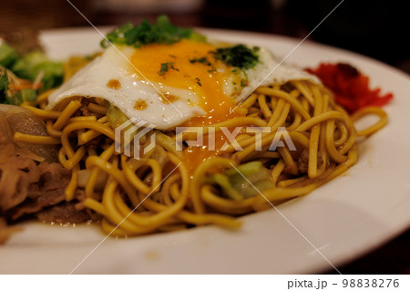 四天王の横手焼きそば(秋田県横手市)割れた目玉焼き横構図