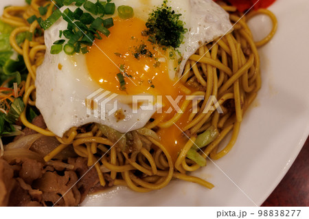 四天王の横手焼きそば(秋田県横手市)割れた目玉焼き上構図