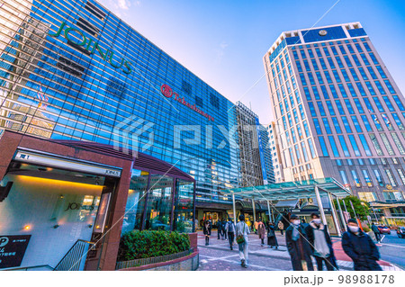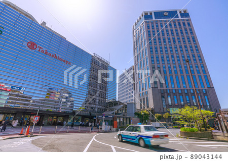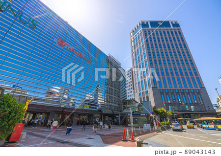 日本の横浜都市景観 横浜駅西口の横浜タカシマヤや横浜ベイシェラトンホテルなどを望む