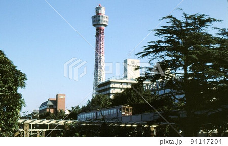 平成元年 マリンタワーとディーゼルカー 横浜山下公園 臨港線 横浜市 神奈川県 記録写真