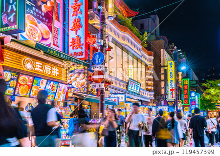 日本の横浜都市景観 横浜中華街。いまだコロナ禍だが、もはやコロナ禍前の人出