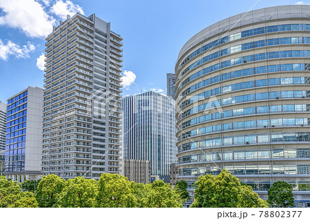 横浜みなとみらいの都市風景 オフィスビルと高層マンション