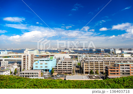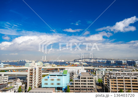 神奈川県横浜市 港の見える丘公園から望む横浜ベイブリッジと港の風景