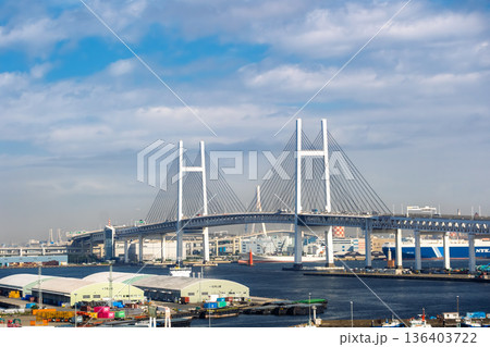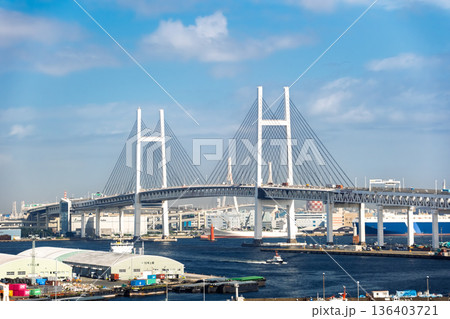 (神奈川県)横浜ベイブリッジ 行き交う船