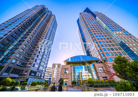 日本の横浜都市景観 みなとみらいの横浜銀行などを望む