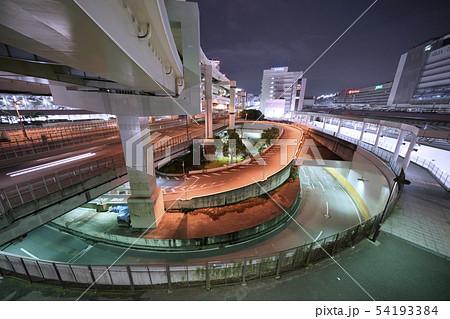 日本の横浜都市景観 横浜駅前。東口ロータリー出口や首都高ETC専用入口などを望む