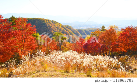横谷観音展望台 駐車場の展望デッキから眺めた紅葉