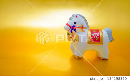 金屏風と並ぶ午年のイメージ