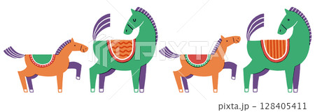北欧カラーの親子馬・午年イラスト(ベクター)