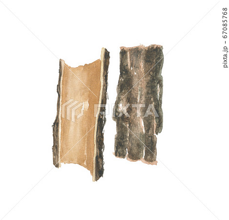 水彩で描いたクヌギと樹皮 樸樕 ボクソク