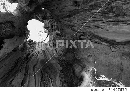 自然 植物 ムクノキ、老木。大木になると深い襞をきざむ板根が発達します
