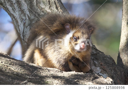 cute wild bear cuscus aulirops ursinus arboreal against blure background.