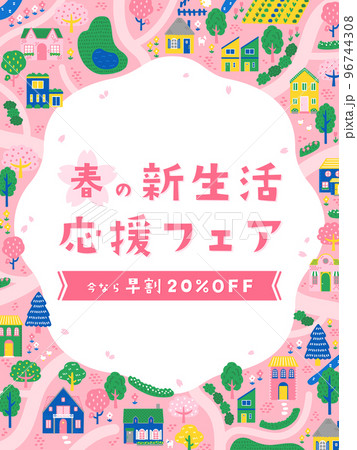 手描き 街並み(俯瞰)のフレーム・背景素材/サンプル文字入り(縦向き)