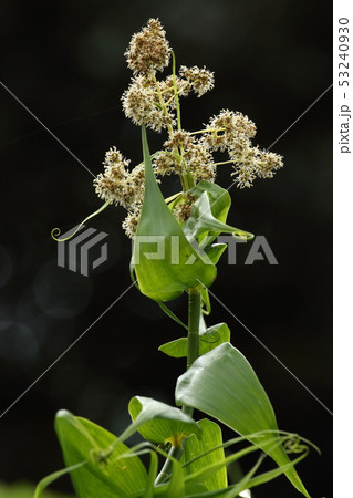 自然 植物 トウツルモドキ、先端が巻きひげ状になった葉が周囲の植物に絡みついてどんどん上に伸びます