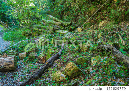 The hiking path in rural in Kyoto Japan. Rural scene in Kyoto, Japan. Japan hiking route, nature scene. Green forest.