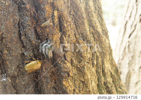 樹液に集まるカナブンの画像素材(写真・イラスト) 1ページ目