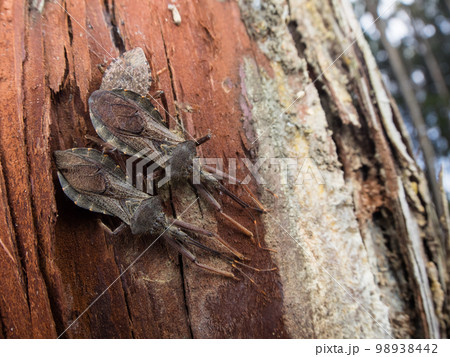 生き物 昆虫 ヒメコバネナガカメムシ、ケヤキの樹皮下で集団越冬。活動期の夏に見かけることは少ない