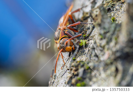 小春日和の秋の日に暖かい日差しを浴びて越冬に備えるアシナガバチの姿