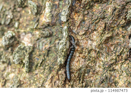 木の幹を這うヤスデ