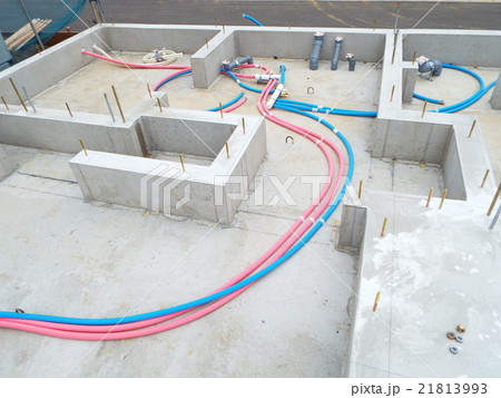 建築現場 給水・給湯配管と基礎コンクリート