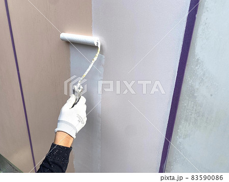 リシン吹き付け外壁に下塗り作業
