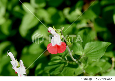 三鷹中原に咲く赤と白のサルビアミクロフィラ