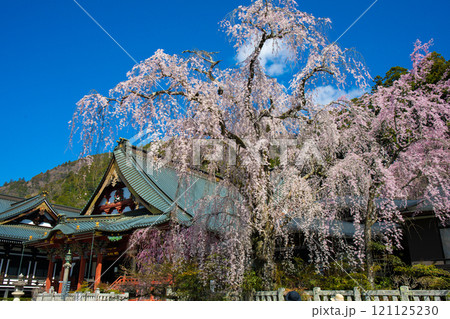 枝垂れ桜と社殿