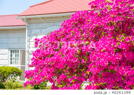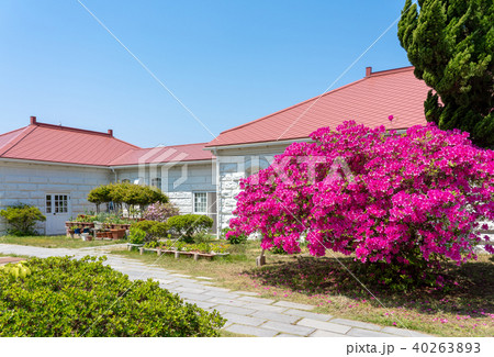 美保関灯台 ビュッフェのそばに樹齢100年のツツジ