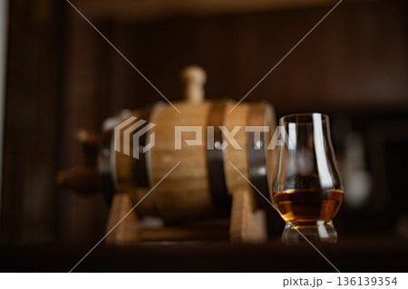 樽熟成イメージ ウイスキー コピースペース Bar 小物 雑貨 ミニ樽 オーク ミズナラ樽